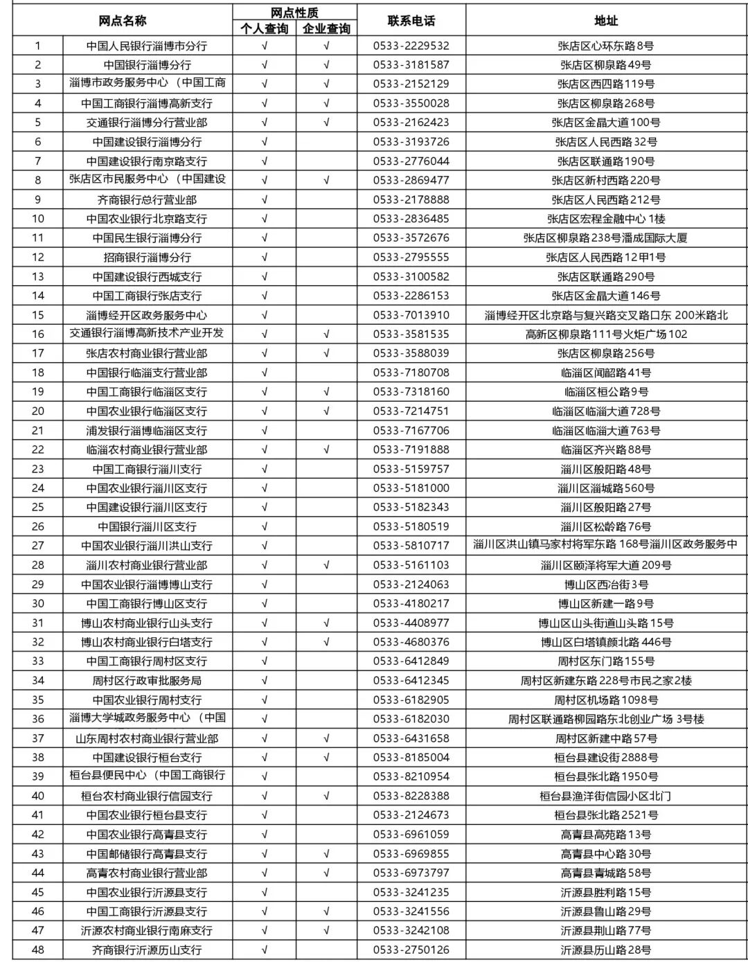 淄博市信用报告自助查询网点