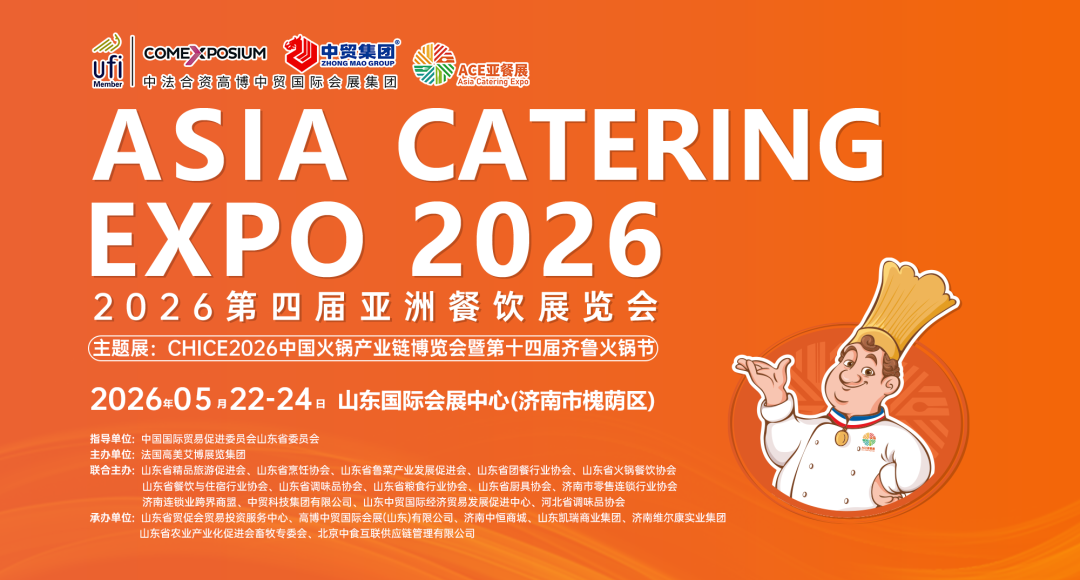 ACE2026第四届亚餐展将以创新食代·品味世界为主题,于2026年5月 22-24日,在山东国际会展中心举办。