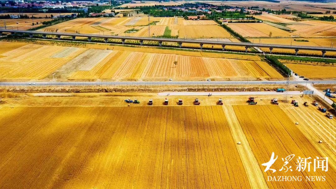 刘莉农场进行规模化、标准化集中管理。图为小麦收割场景。