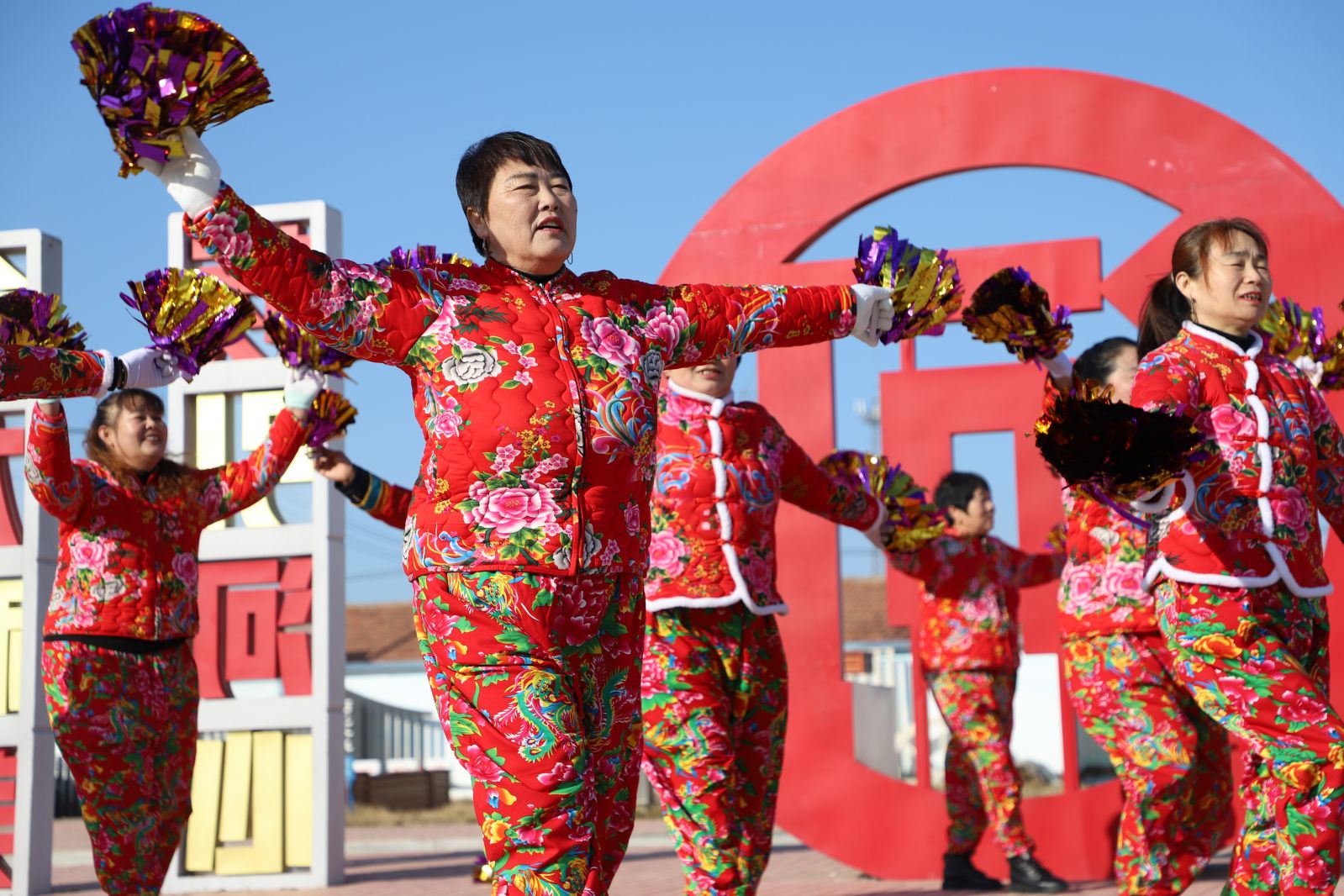 舞蹈队排练广场舞。