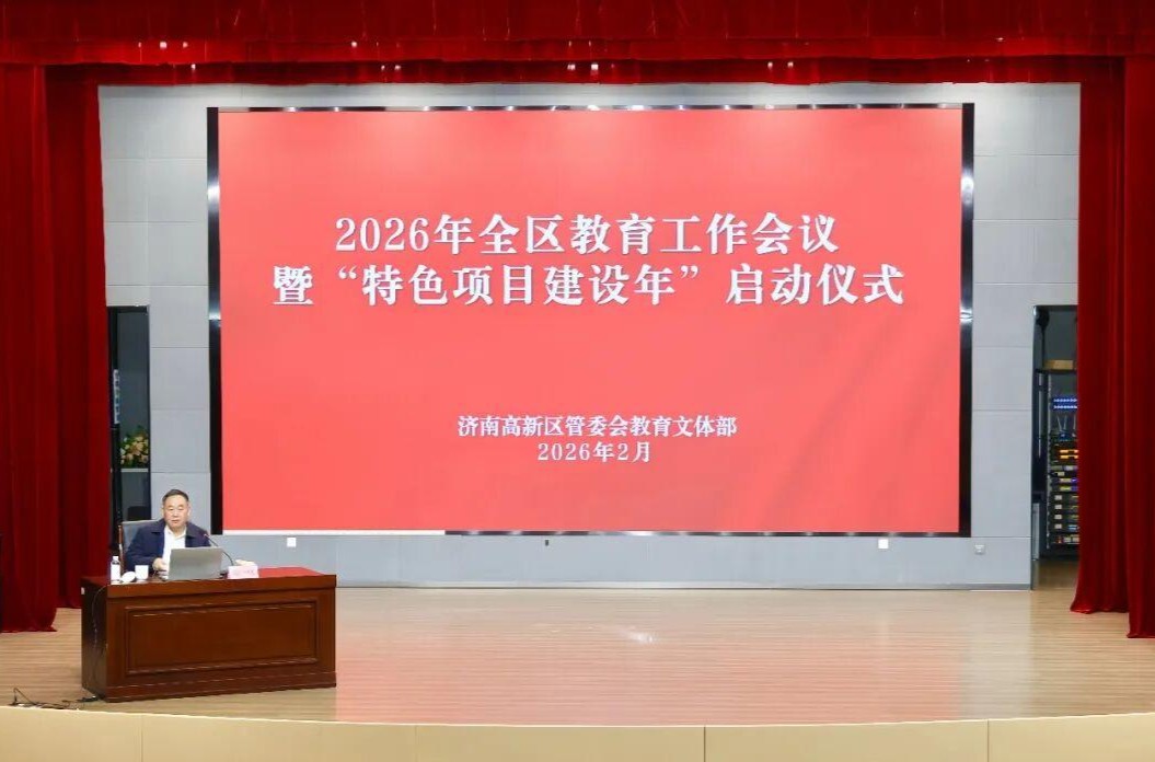 近日,2026年济南高新区教育工作会议暨特色项目建设年启动仪式在崇华学校举行。会议传达学习了国家、省、市教育工作会议精神,全面回顾了过去五年高新教育的发展历程与成果,擘画了未来五年教育高质量发展的蓝图。