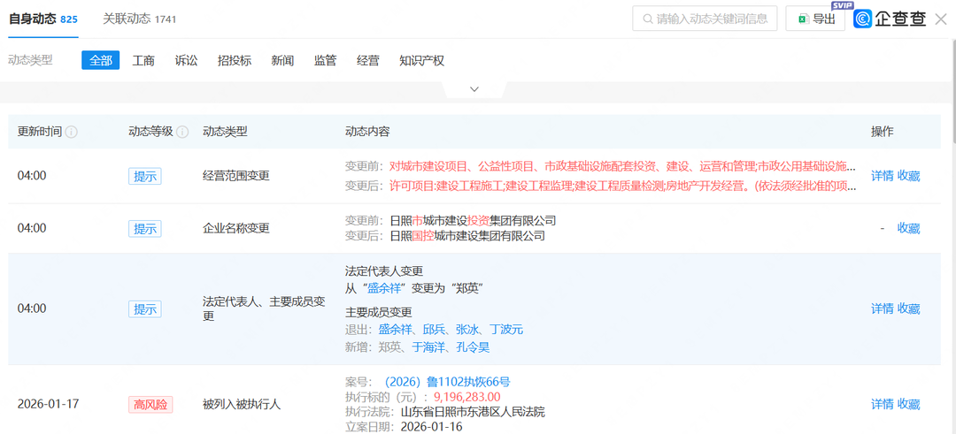 3月2日,企查查信息显示,日照市城市建设投资集团有限公司名称、经营范围、法定代表人及主要成员均发生变更。