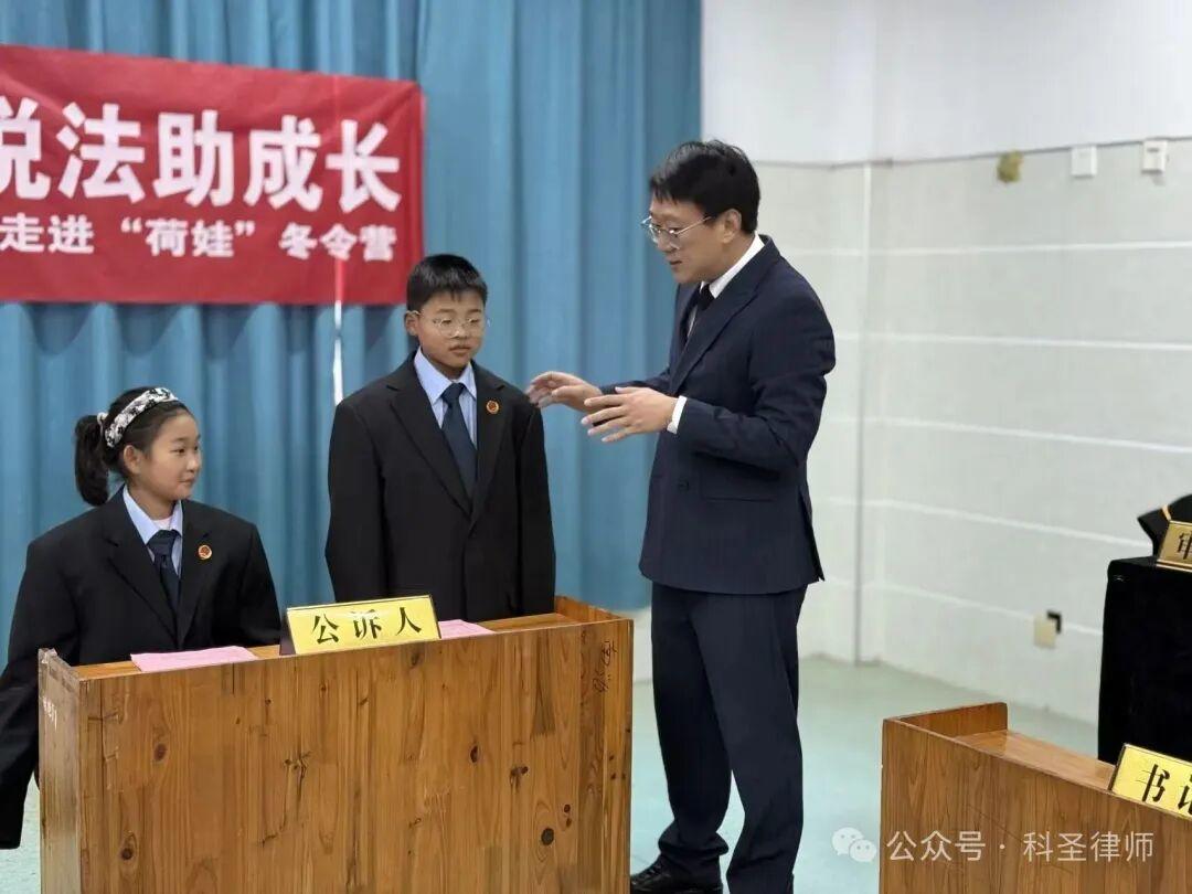 为进一步加强青少年法治教育,帮助孩子们树立正确的法律观念,摒弃 “年纪小无责” 的错误认知,山东科圣律师事务所律师团队走进 “荷娃” 冬令营,以“模拟法庭+法治讲座”的沉浸式形式,为孩子们带来了一堂生动又深刻的法治实践课,让法律的种子在孩子们心中生根发芽。