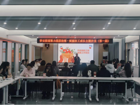 为深入推进基层治理体系和治理能力现代化,全面提升社区工作者政治素养、业务能力与服务水平,近日,青云街道在田园社区举办“聚力基层治理 赋能社工成长”主题沙龙活动。