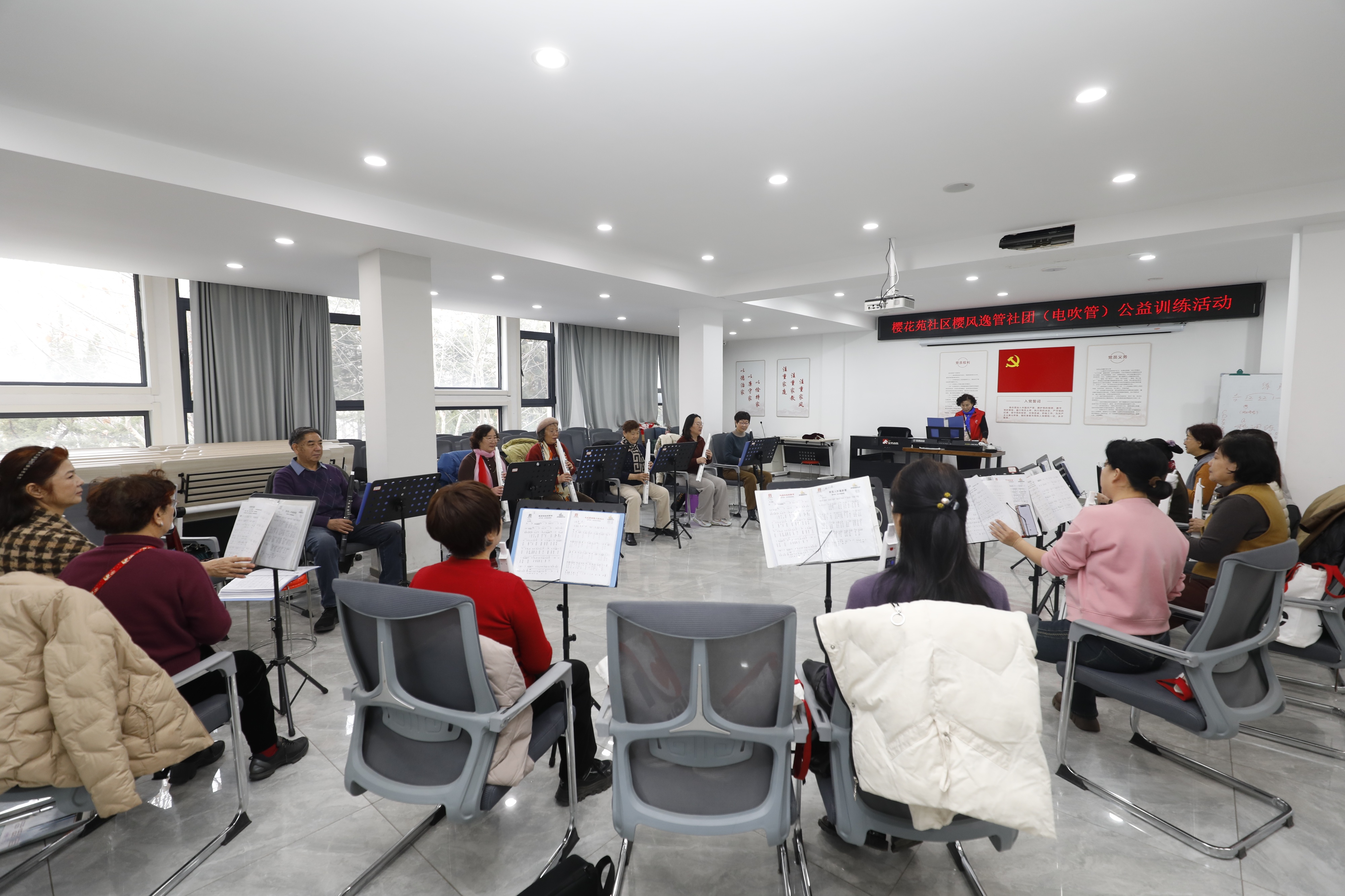 空间数字化+场景融合,筑牢文化服务枢纽。文化服务,阵地先行。为打破传统文化阵地“功能单一、服务脱节”的瓶颈,樱花苑社区创新“实体空间+数字平台”融合模式,建成“墨子书院·樱花学苑”综合体,配套樱书坊、樱音阁等主题空间,作为省级文化数字智能平台试点,实现“线上专栏推课、线下大屏展播、楼栋志愿教学”三维服务。线上居民作品互动量超2000人次,线下依托省级文化资源进社区开展现场教学30余场,综合体月均接待4200人次,使用率较前一年度提升45%,为文化活动开展筑牢硬件根基。