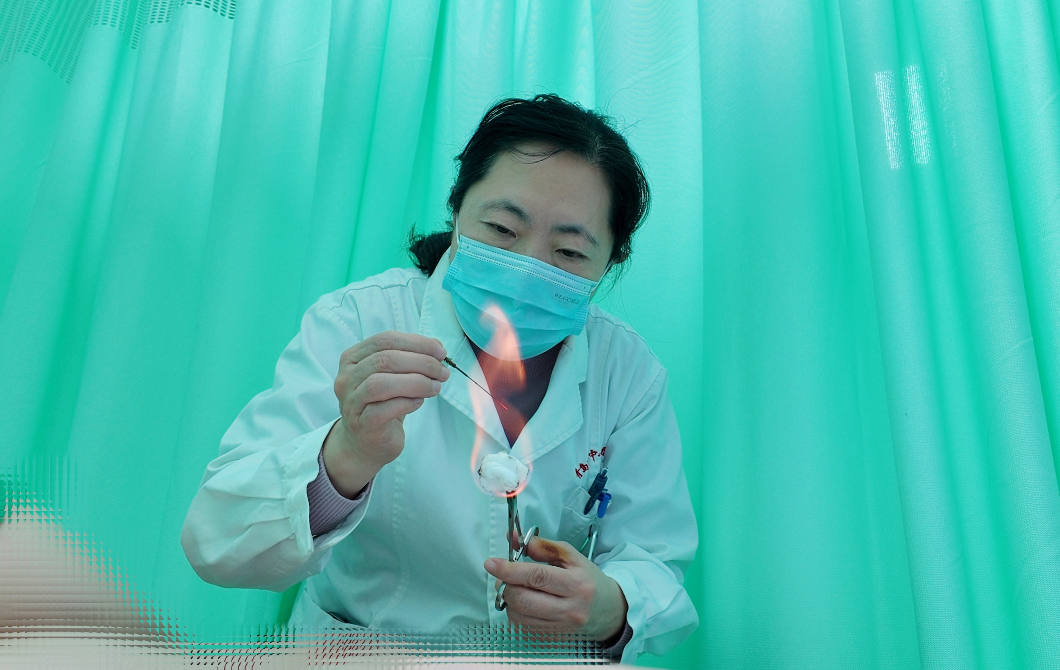 “这可不是普通的针,是专门定制的乌锰合金火针,能承受三千多度高温,烧得越红,疗效越好。”在康复大学青岛中心医院针灸科诊室,高霞主任手持特制针具向记者展示,她针具靠近酒精灯,针尖燃起赤红火焰。“火针疗法最早记载于《灵枢・官针》的‘焠刺’之术,是中医九针的重要组成部分,核心要诀就是‘红、准、快’三个字。”