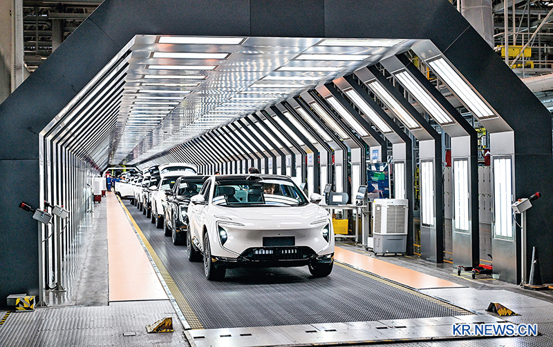 창안(長安)자동차 스마트 공장에서 신형 순수 전기 플랫폼에 기반한 차량 모델이 출하되고 있다. 연구개발(R&D)·생산·검사의 전 과정이 스마트화 방식으로 관리 및 제어되는 이곳 공장은 기존 공장보다 50% 이상 높은 생산 효율을 자랑한다.
