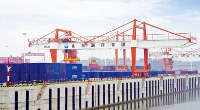 济南港集装箱作业景象