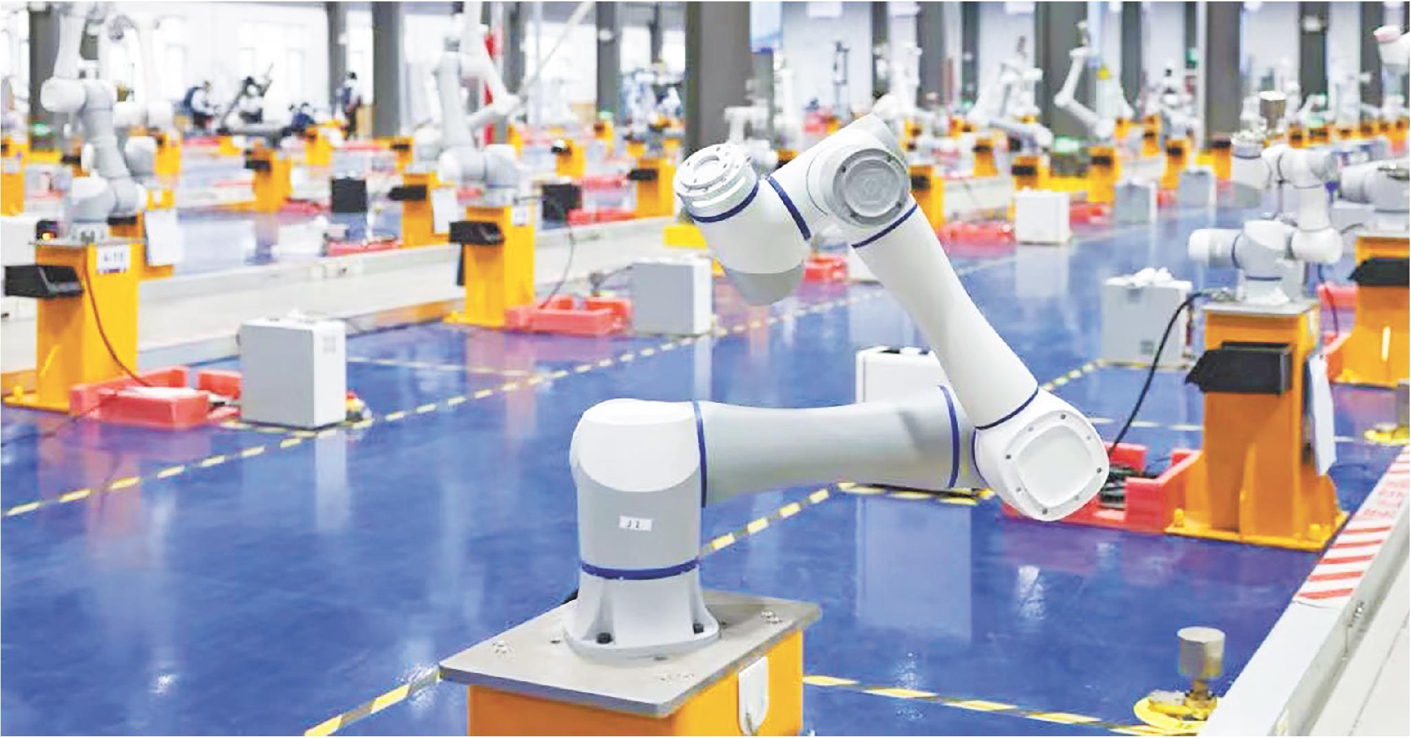 在越疆智能机器人日照生产基地,协作机器人智能机械臂正在进行出厂前的老化测试。
