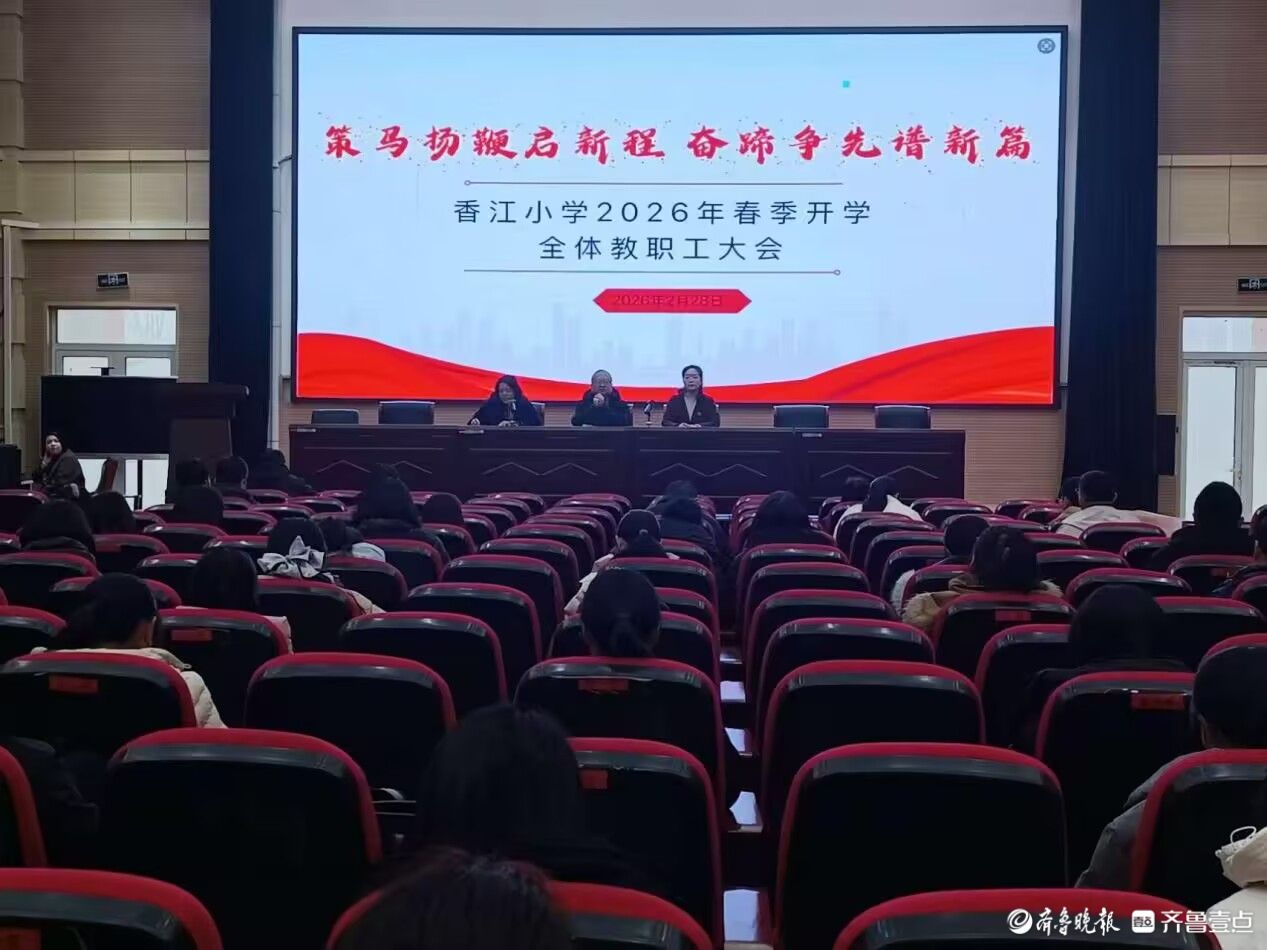 策马扬鞭启新程—香江小学召开2026年春季开学全体教职工大会