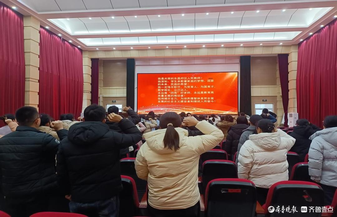 在庄严的会场中,全体教师举起右手,郑重宣誓,铿锵有力的誓言彰显了全体教师坚守教育初心、勇担育人使命的坚定信念。