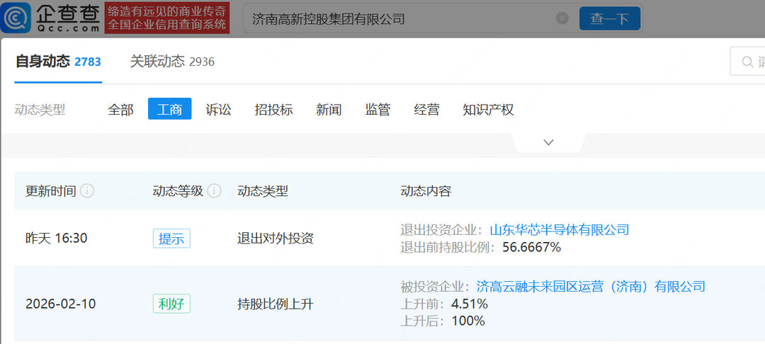 据企查查,此前2月10日,济高控股还全资控股了济高云融未来园区运营(济南)有限公司(下称“济高云融”)。