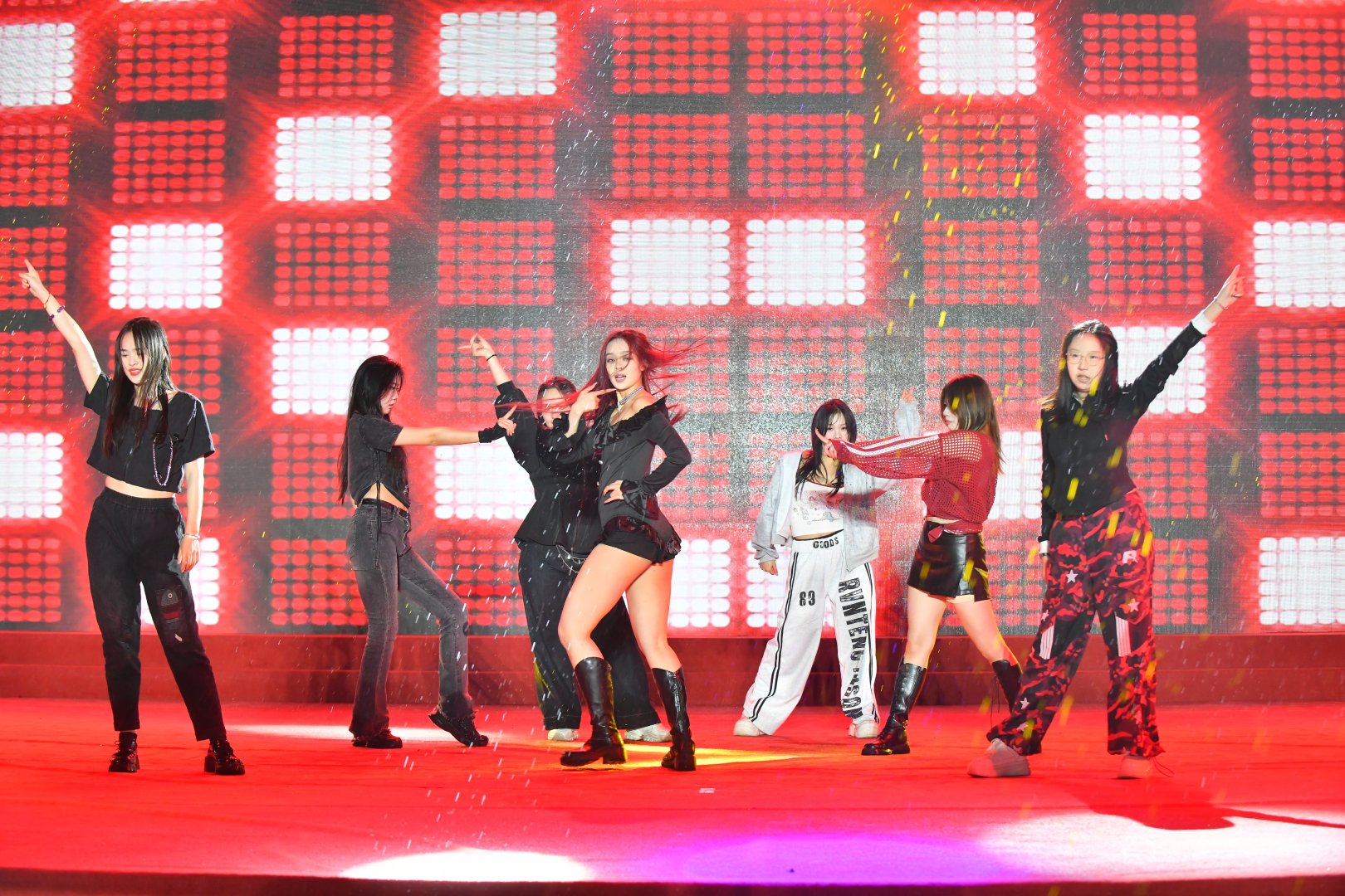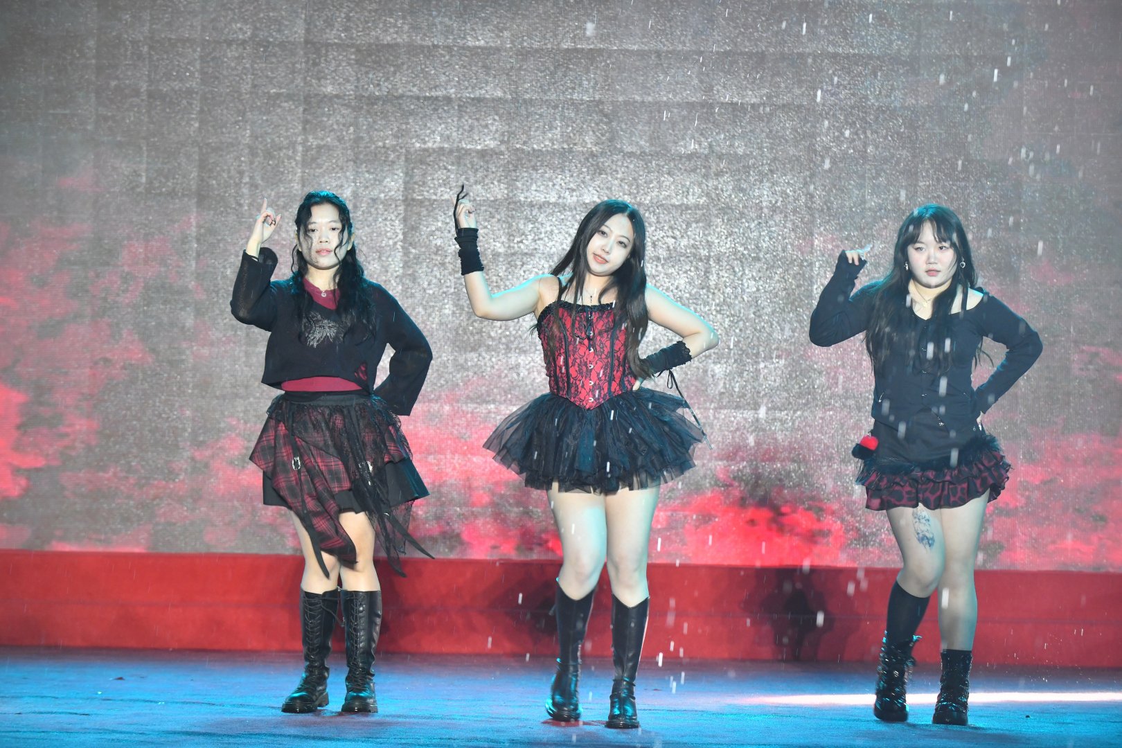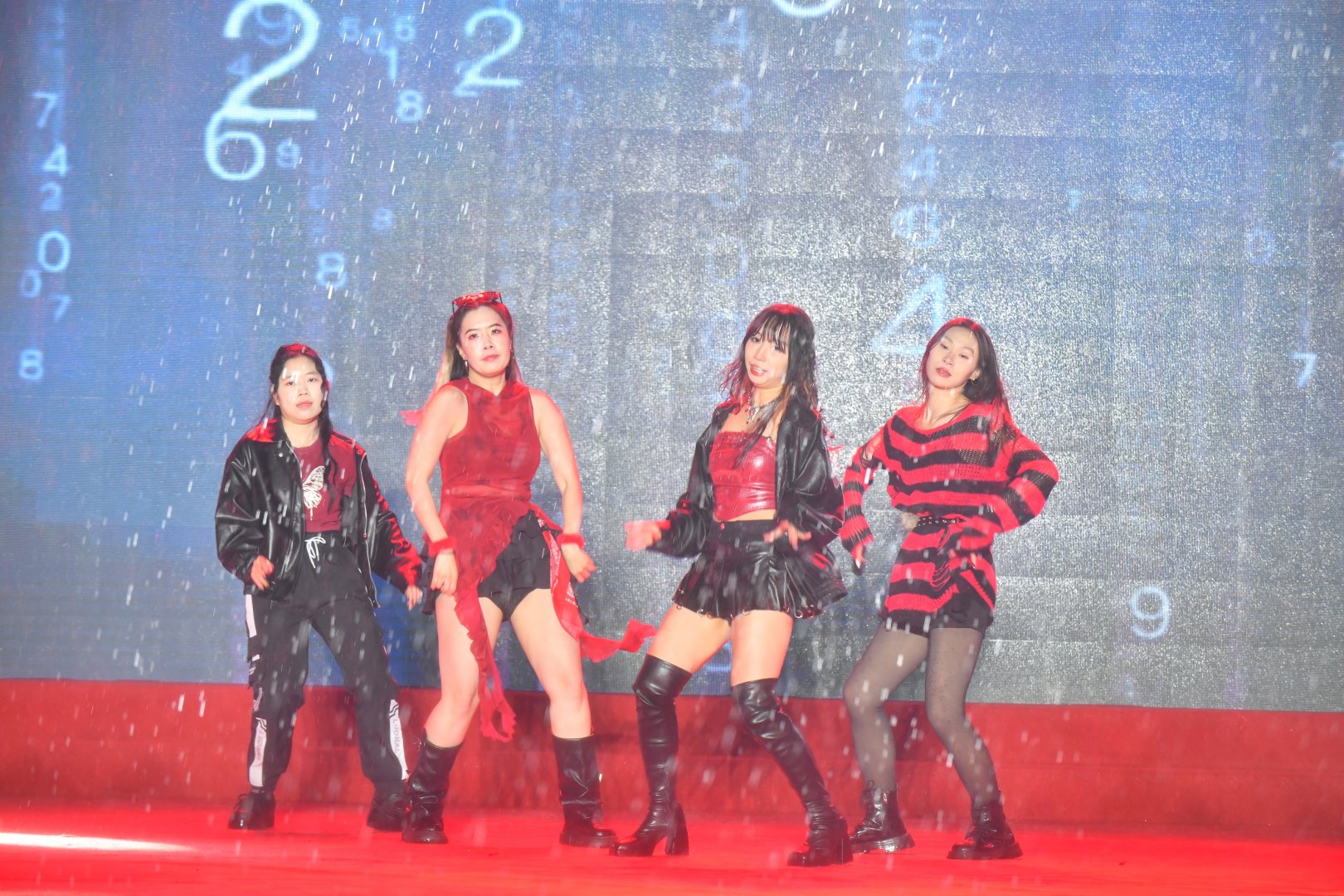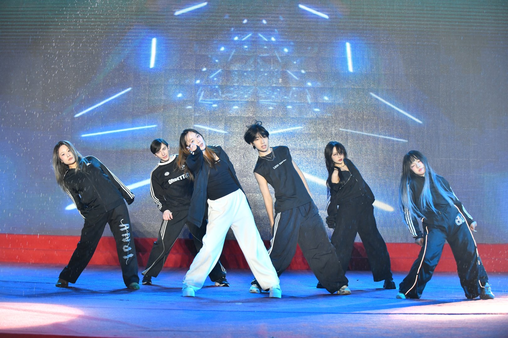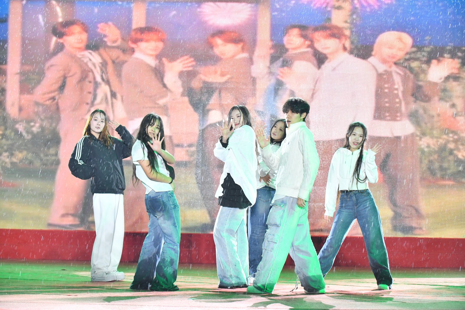 不得不说,这群年轻人的敬业程度简直“瑞思拜”。演出的当天天公不作美,下起了绵绵细雨,但舞台上的大学生们集体开启了“高燃模式”。为了保证舞台效果,大家心照不宣地拒绝了雨棚和雨衣,顶着风雨完成了各种高难度卡点和走位。当熟悉的热门曲目响起,整齐划一的动作配合着台下的尖叫与应援,现场氛围感直接拉满。这哪里是演出,这分明是00后在用热爱向世界宣言:青春,就是要在雨中肆意绽放!