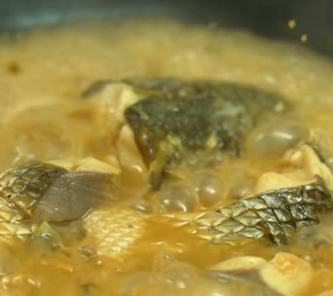 3、把鱼放到锅中,轻微的煎一下,烹入米醋、料酒,加入开水,盖上锅盖焖15到20分钟