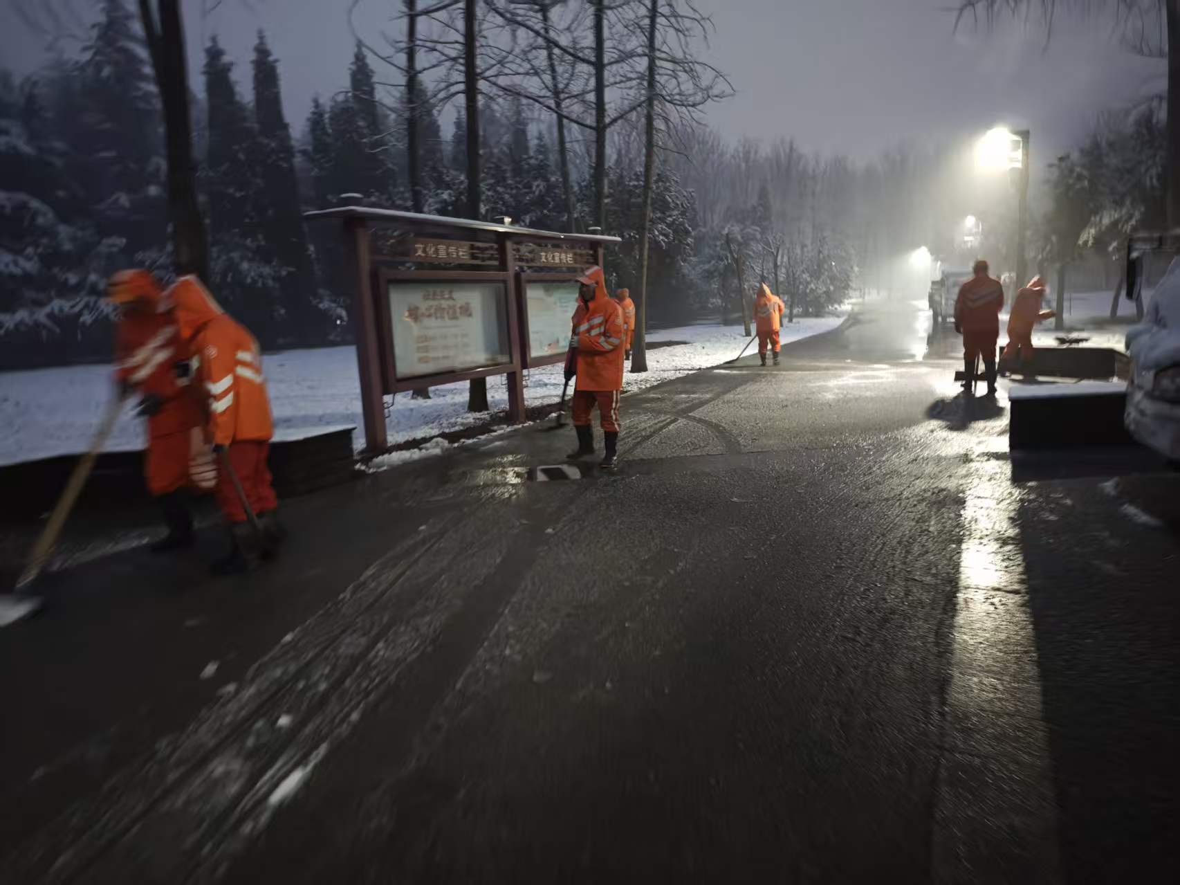 在做好苗木养护的同时,作业人员同步对辖区公园、游园的通行道路开展人工清扫,及时清除路面零星积雪,全力保障市民游园、出行安全顺畅,最大限度降低降雪天气带来的不便。