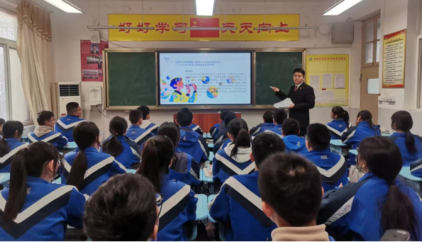 整合专业资源,筑牢法治教育核心阵地。一是健全双轨育人机制。聘请县检察院、县法院、辖区派出所等单位人员担任法治副校长、法治班主任,构建“法治副校长+法治班主任”双轨模式,搭建司法机关与学校协同育人的坚实桥梁。法治副校长牵头制定年度法治教育计划,每月入校开展授课、指导等工作,法治班主任深耕班级,全程参与学生管理与法治教育实施。二是丰富普法教育形式。法治副校长、法治班主任通过互动问答、情景模拟等沉浸式教学,围绕宪法核心内容、未成年人权益保护、交通安全知识、校园欺凌预防、网络诈骗识别等主题,开展专题法治讲座、案例剖析会等活动,推动法治教育与课堂教学深度融合,让法律知识真正入脑入心。三是深化课堂融合渗透。为打破法治教育“碎片化”局限,着力构建“学科融合+沉浸式教学”的常态化普法模式,推动法律知识与日常教学深度衔接。法治副校长、法治班主任代表深入班级课堂,开展“零距离”普法教学。结合不同学科特点,将宪法、未成年人保护等法律知识融入具体教学场景,引导学生在参与体验中理解法律内涵,在思辨探究中强化法治意识。