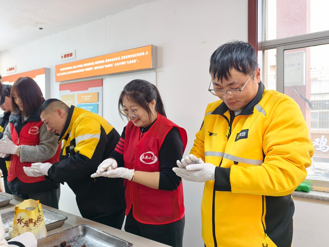 活动现场,糯米粉、豆沙馅等材料整齐摆放。社区工作人员、志愿者与外卖小哥们围坐在一起,分工协作、默契配合,揉面团、包汤圆,欢声笑语中,一个个圆润饱满的汤圆摆满托盘。汤圆下锅煮沸,驿站内香气四溢。大家手捧热气腾腾的汤圆,暂时卸下奔波的疲惫,感受着“家”的温暖。
