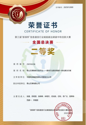 平台落地以来,实现节能8%、年降碳1.6万吨的绿色成效,助力企业获评全国首批“无废企业”。凭借技术创新与实践价值,平台先后斩获“新绿杯”全国总决赛二等奖、山东数据要素大赛一等奖等多项权威奖项,形成1项发明专利与8项软著的知识产权矩阵。