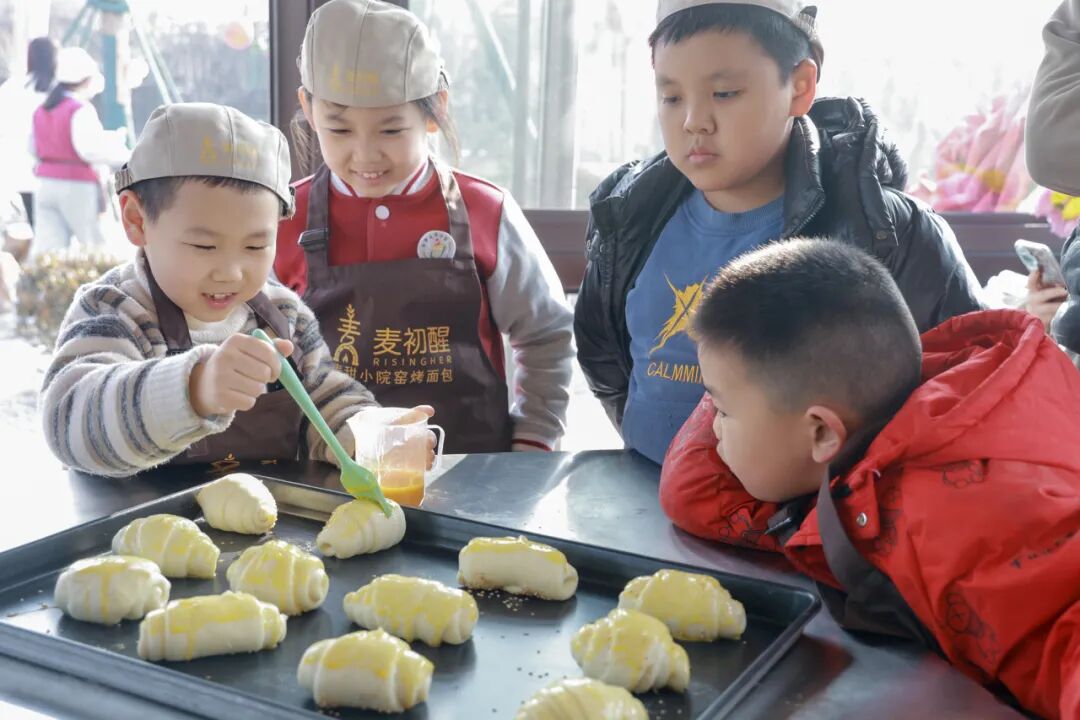 太阳花共同体开展面包制作体验,队员们认识了“酵母”的作用,老师通过趣味讲解,让大家了解酵母使面团发酵的原理。孩子们亲手揉面,感受面团从松散到柔韧的变化,精心整形后等待二次发酵,不时观察面团膨胀情况。当金黄松软的面包出炉,队员们不仅收获味蕾满足,更懂得美好事物需要耐心与用心守候。