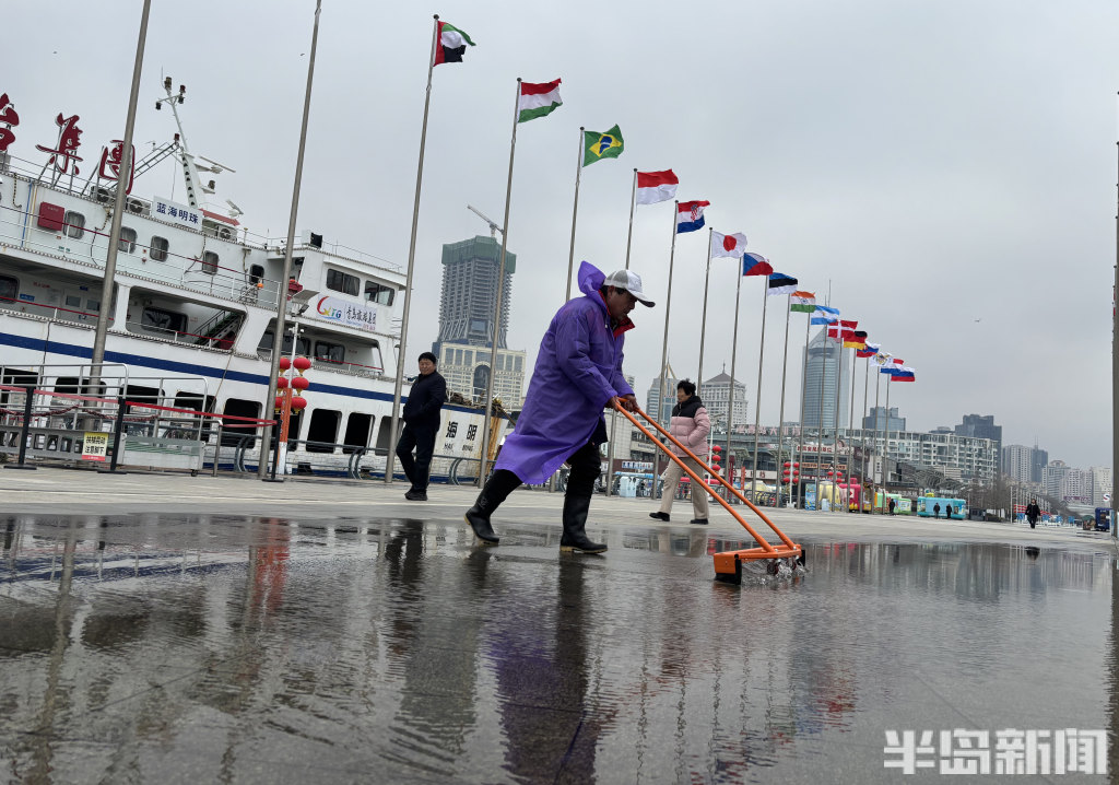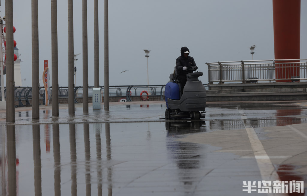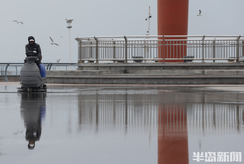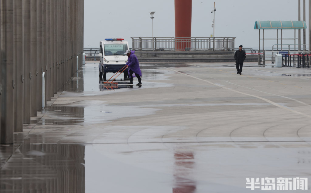 3月2日下午,雨后的岛城空气清新,虽然海风吹在脸上有点凉意,但整体温度适宜。在青岛奥帆中心火炬大道前,工作人员也在及时清理路面积水,保障游客安全顺畅游览。据青岛气象消息,这场春雨过后,本市将迎来新一轮冷空气。提醒市民和游客出行前留意天气预报,适时添衣,做好防寒保暖。(半岛全媒体记者何毅)