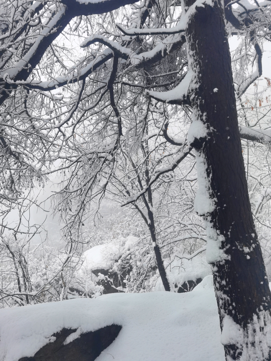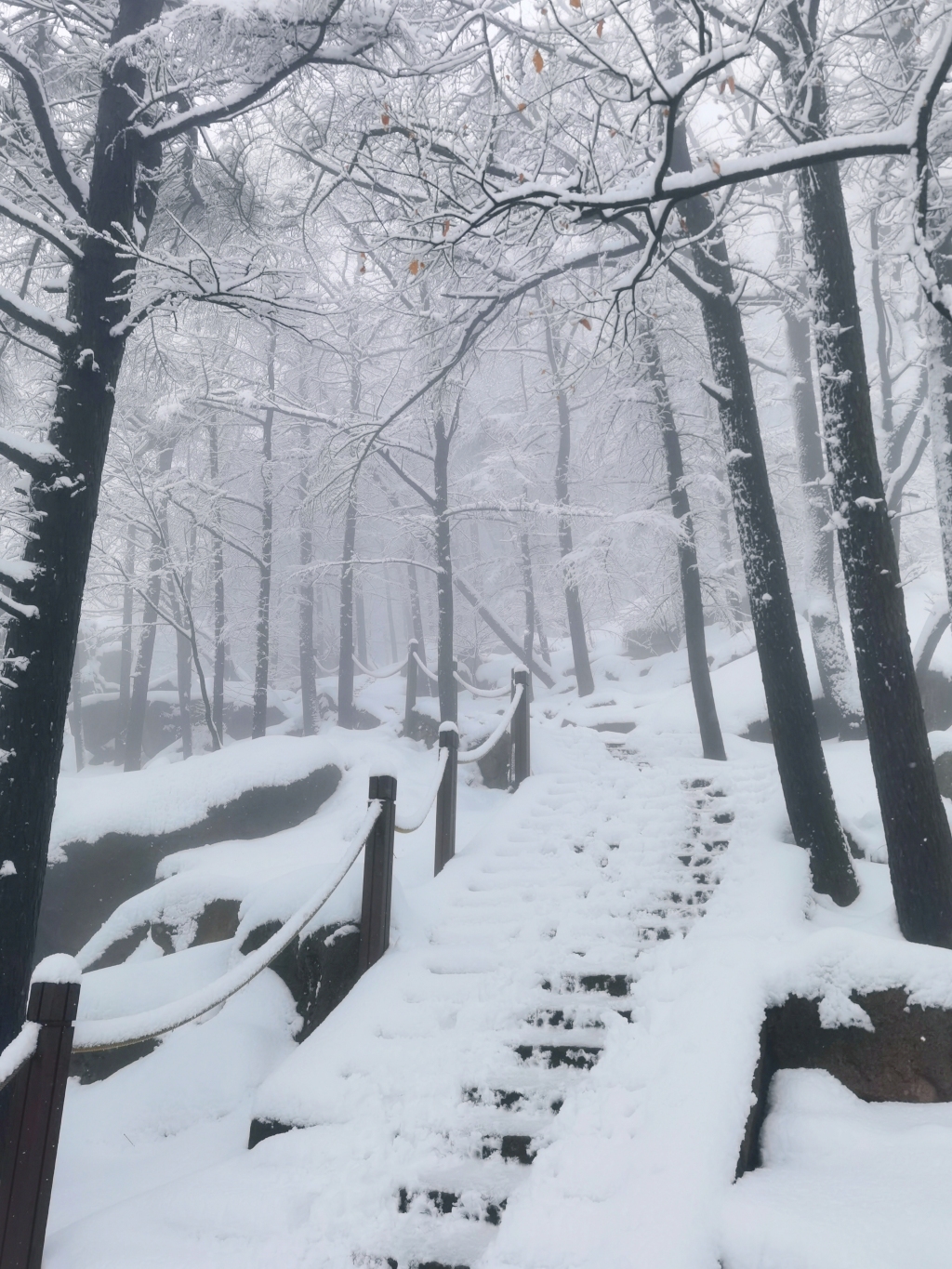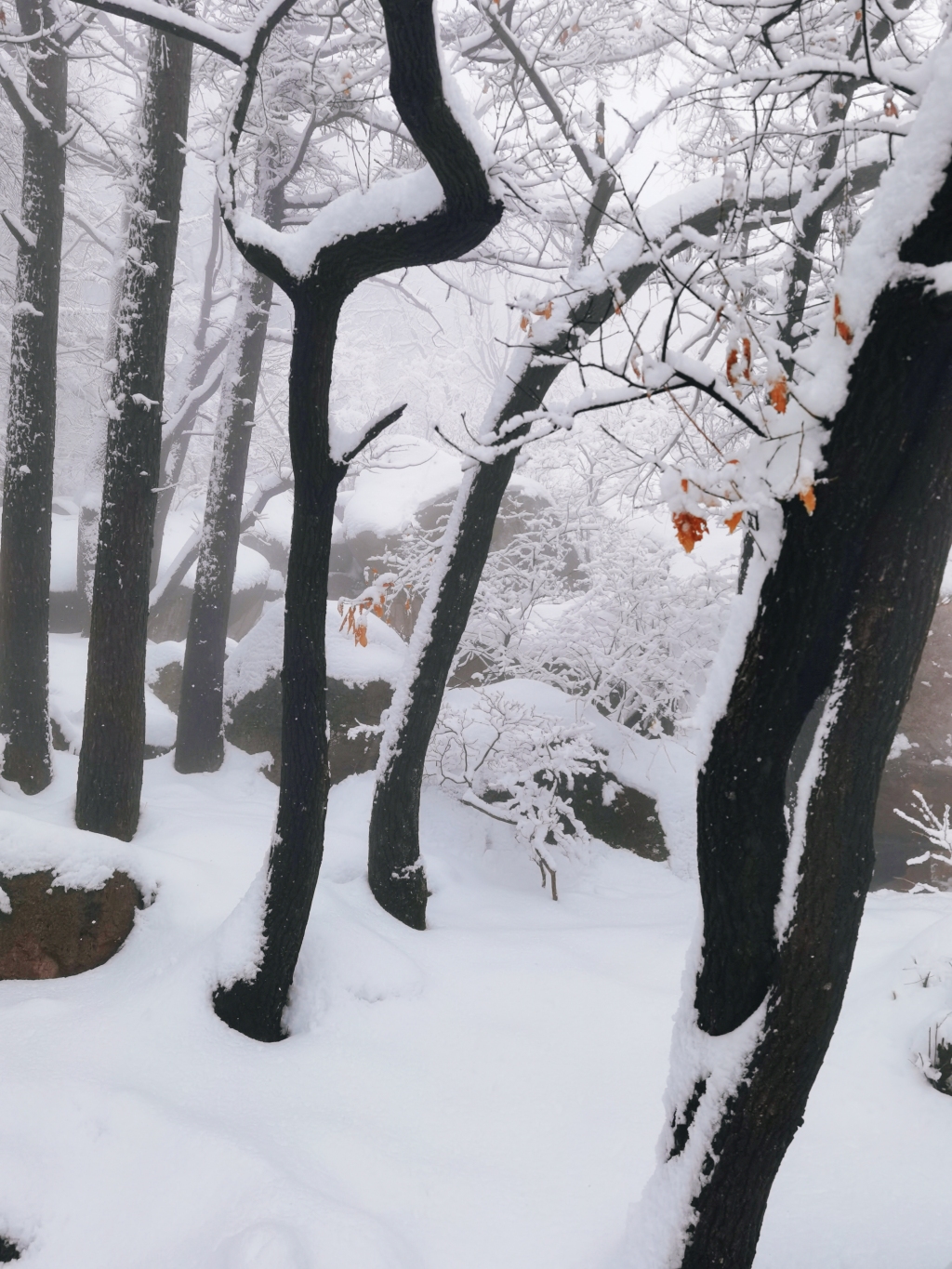 青岛的雪都下在崂山了!积雪厚度可达膝盖,漫山银装成冰雪仙境