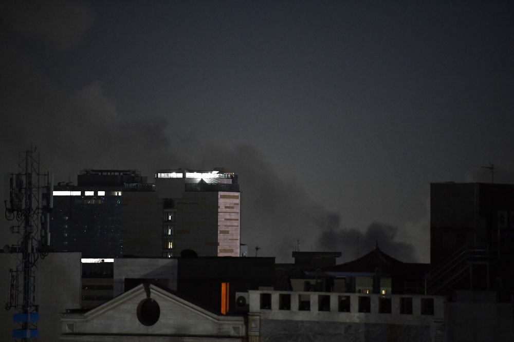 这是3月1日晚在伊朗首都德黑兰市区拍摄的浓烟。新华社记者沙达提摄