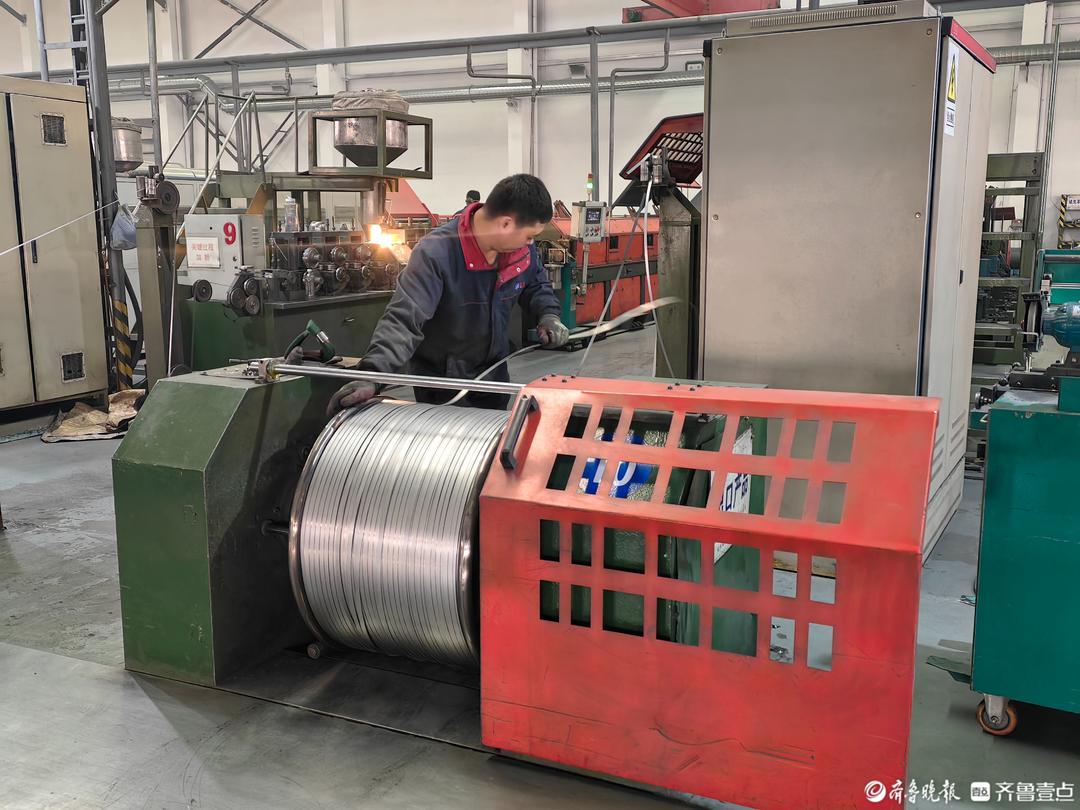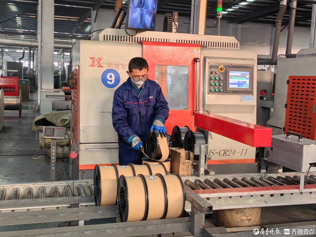 2月27日,在山东聚力焊接材料有限公司(以下简称“聚力焊接”)生产车间,空气中弥漫着金属的气味,一排排整齐划一的自动化设备发出低沉而有节奏的轰鸣,工人们专注而熟练地操作着设备,生产线上一派热火朝天的繁忙景象。“即使春节假期期间,公司的订单承接工作就没断过。今天凌晨两点多,我还成功接洽了一个来自美国客户的大额订单。”外销主管高云飞说。