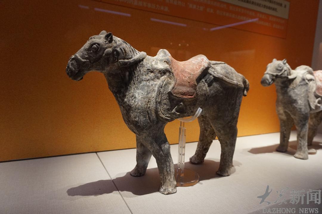 百余件精品文物,是这场时光之旅的见证者。西汉彩绘陶马车,朱红为底,彩绘为饰,车舆规整,骏马昂首,虽历经两千年风雨侵蚀,依旧能窥见汉代贵族出行的威仪与气度。西汉鎏金铜当卢,鎏金虽有斑驳,却依旧闪耀着温润的光泽,纹样间藏着“龙马精神”的期许,将先民对力量的向往,熔铸于器物之上。