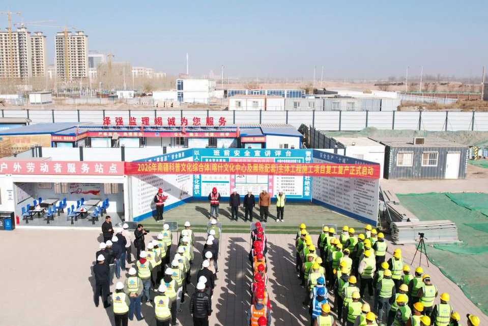 3月2日,南疆科普文化综合体建设项目正式复工。喀什地区政协工委党组书记、副主任范宝军出席复工仪式并讲话。