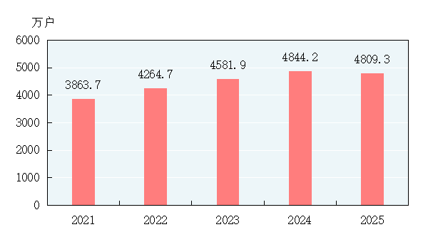 图4 2021-2025年年末(固定)互联网宽带接入用户数