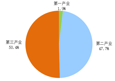 初步核算,全年实现地区生产总值103197.5亿元,比上年增长5.5%。其中,第一产业增加值6774.9亿元,增长4.0%;第二产业增加值40541.4亿元,增长5.0%;第三产业增加值55881.1亿元,增长6.1%。三次产业结构为6.6∶39.3∶54.1。