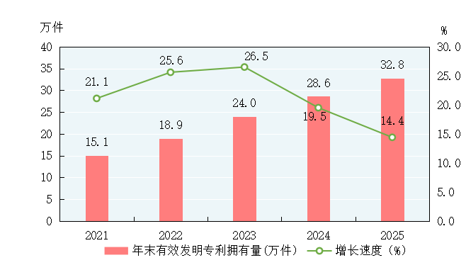 图10 2021-2025年年末有效发明专利拥有量及其增长速度