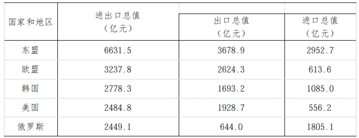 表5 2025年对主要国家和地区货物进出口总值