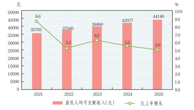 图8 2021-2025年全省居民人均可支配收入及其增长速度