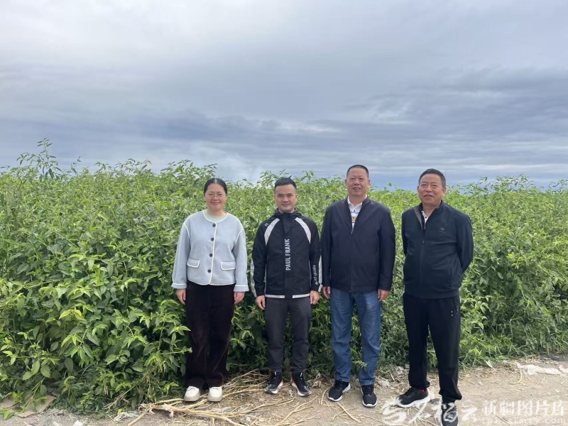 2025年8月,福建省农业科学院专家团队来乌鲁木齐考察“埃及帝王菜”时与杨华连(右一)合影。图/受访者提供