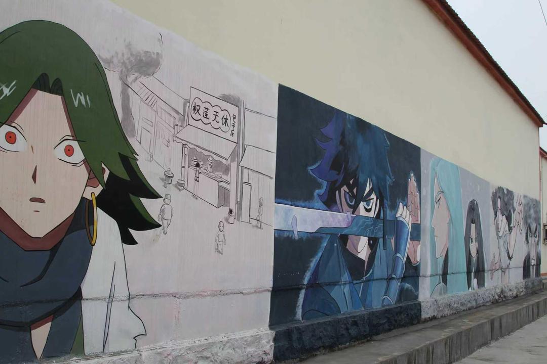 如果说传统民俗唤醒了乡愁,那么动漫元素则为何垓村注入了年轻的活力。在村内的“动漫街道”,哪吒、黑悟空、申公豹、索隆、哆啦A梦、机器猫等70多个经典动漫形象跃然墙上,色彩鲜艳,栩栩如生。这条街一问世,迅速成为游客尤其是年轻人的打卡地,最高峰时周末每天客流量达三四万人,火爆持续大半年。村民趁着这股高人气,在家门口卖起文玩、制作地方美食,腰包也跟着鼓了起来。