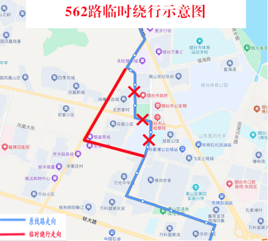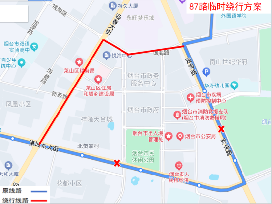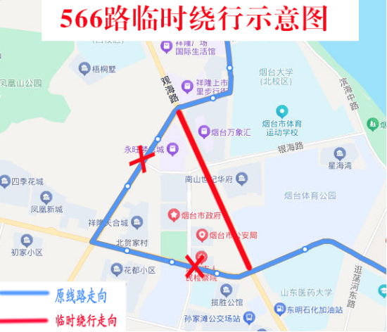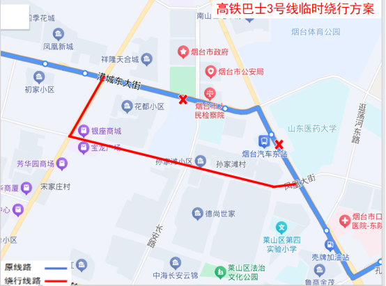 临时取消:观海路港城东大街南、市委党校、胶东文化广场、世纪名都、东方海洋天和大厦(新华保险)、迎春大街凤凰大街北站点。