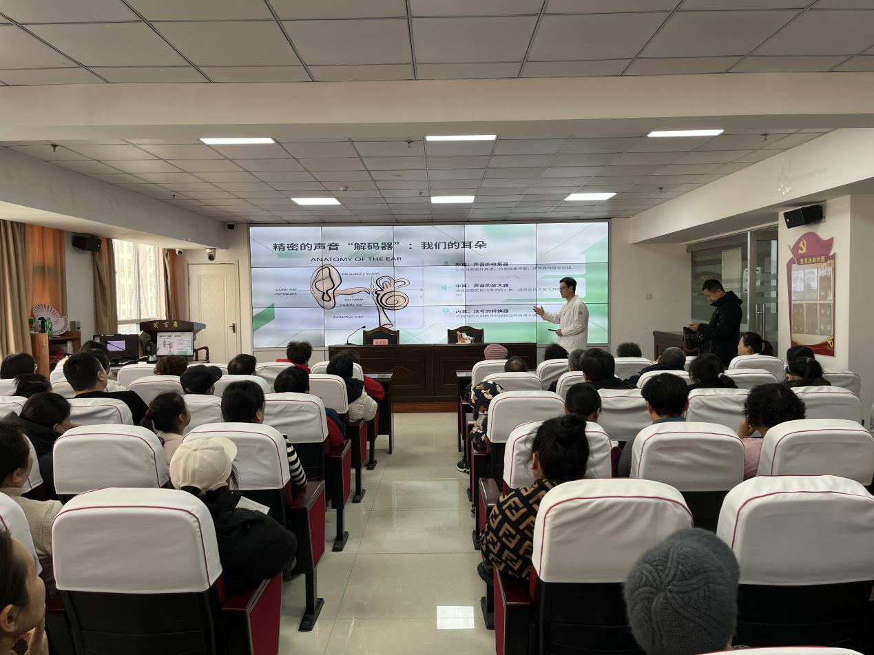 活动现场,由医院眼、耳鼻喉科主任沈友伟为大家带来的健康讲座,围绕听力保护、耳部疾病预防、科学用耳常识等内容进行科普讲解,引导大家树立科学的爱耳护耳意识,远离听力损伤。