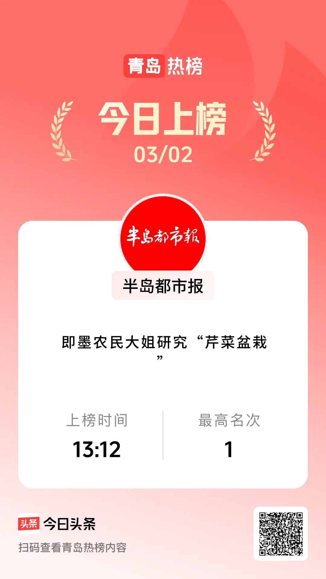 稿件《即墨农民大姐研究“芹菜盆栽”》