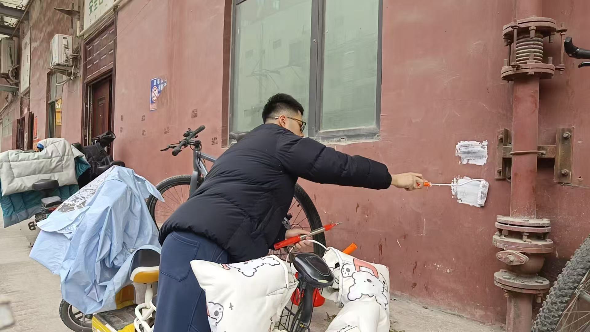 行动中,全体人员携带铲刀、喷壶、除胶剂、抹布等工具,分组分片开展“拉网式”清理。大家分工协作、默契配合,对纸质广告逐一撕除,对顽固胶印与喷涂字迹,先浸润软化再细心铲除,不放过一处残痕、不留下一处死角。参与人员不畏繁琐、不怕脏累,以认真负责的态度清理每一处违规张贴与涂画,用实干守护社区公共空间整洁。