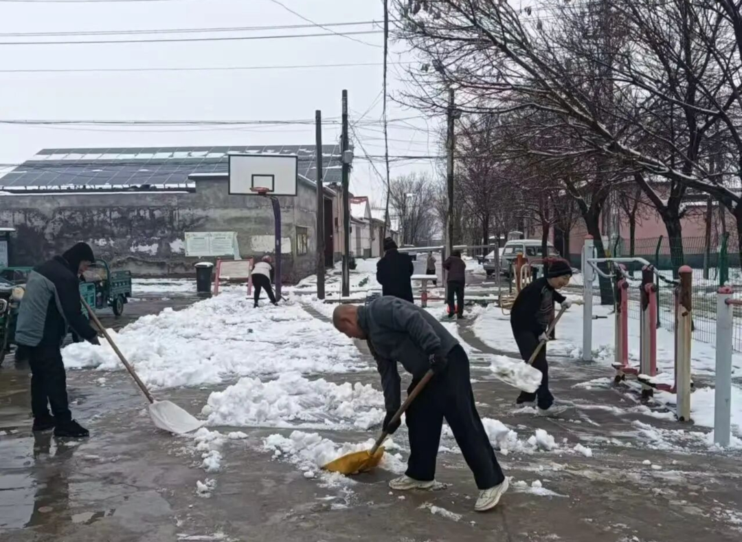 在各村街巷、重点路段,党员干部冲锋在前,公益岗、群众志愿者积极参与,大家分工协作,手持扫帚、铁锹人工清扫,不留死角、不漏一处,全力消除安全隐患。