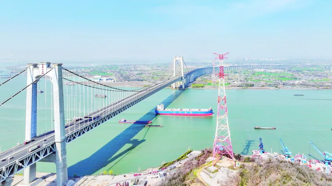 图为我国首个交直流混联跨江工程——江苏扬州至镇江±200千伏直流输电工程长江段。史俊/摄