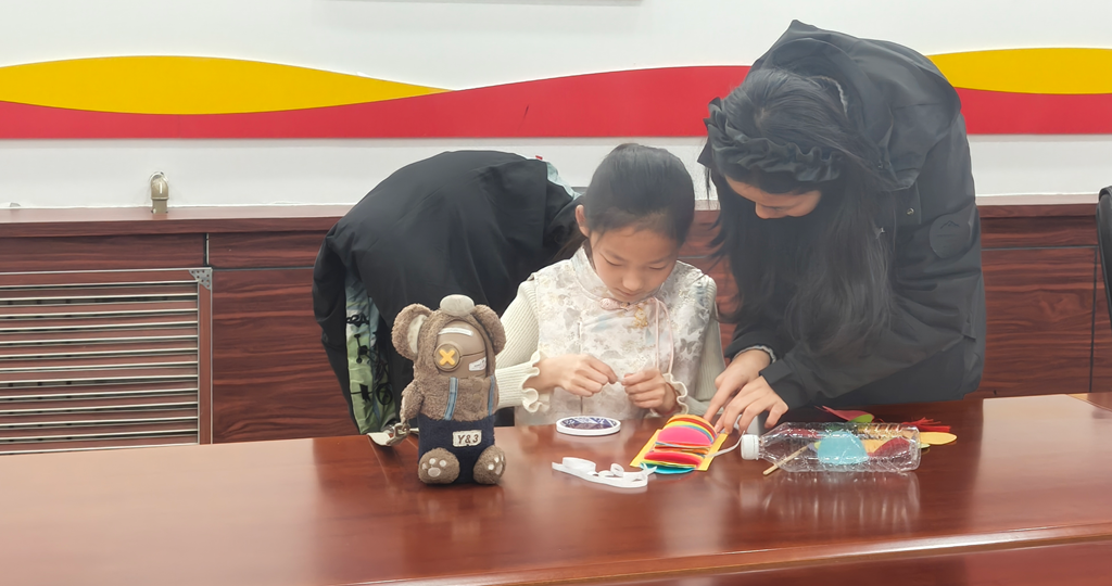 孩子们兴致勃勃、认真专注,在家长和志愿者的陪伴下,一盏盏色彩鲜艳、造型别致的手工灯笼陆续完成,红彤彤的灯笼映着大家的笑脸,年味与节日氛围扑面而来。