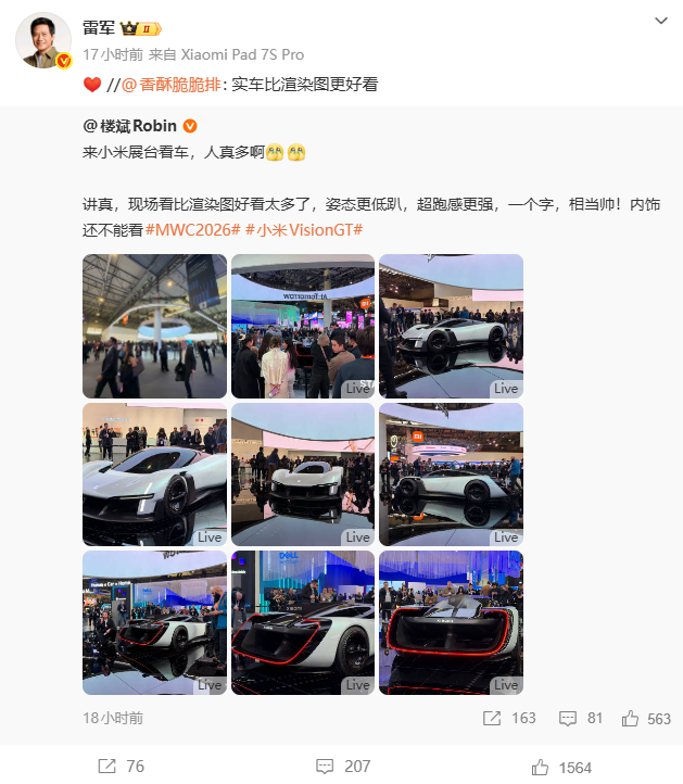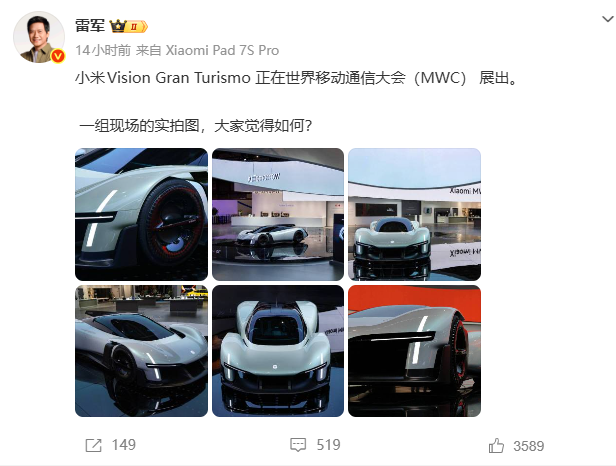 值得注意的是,小米创办人,董事长兼CEO雷军也发出多条微博晒小米Vision GT概念车实拍图。