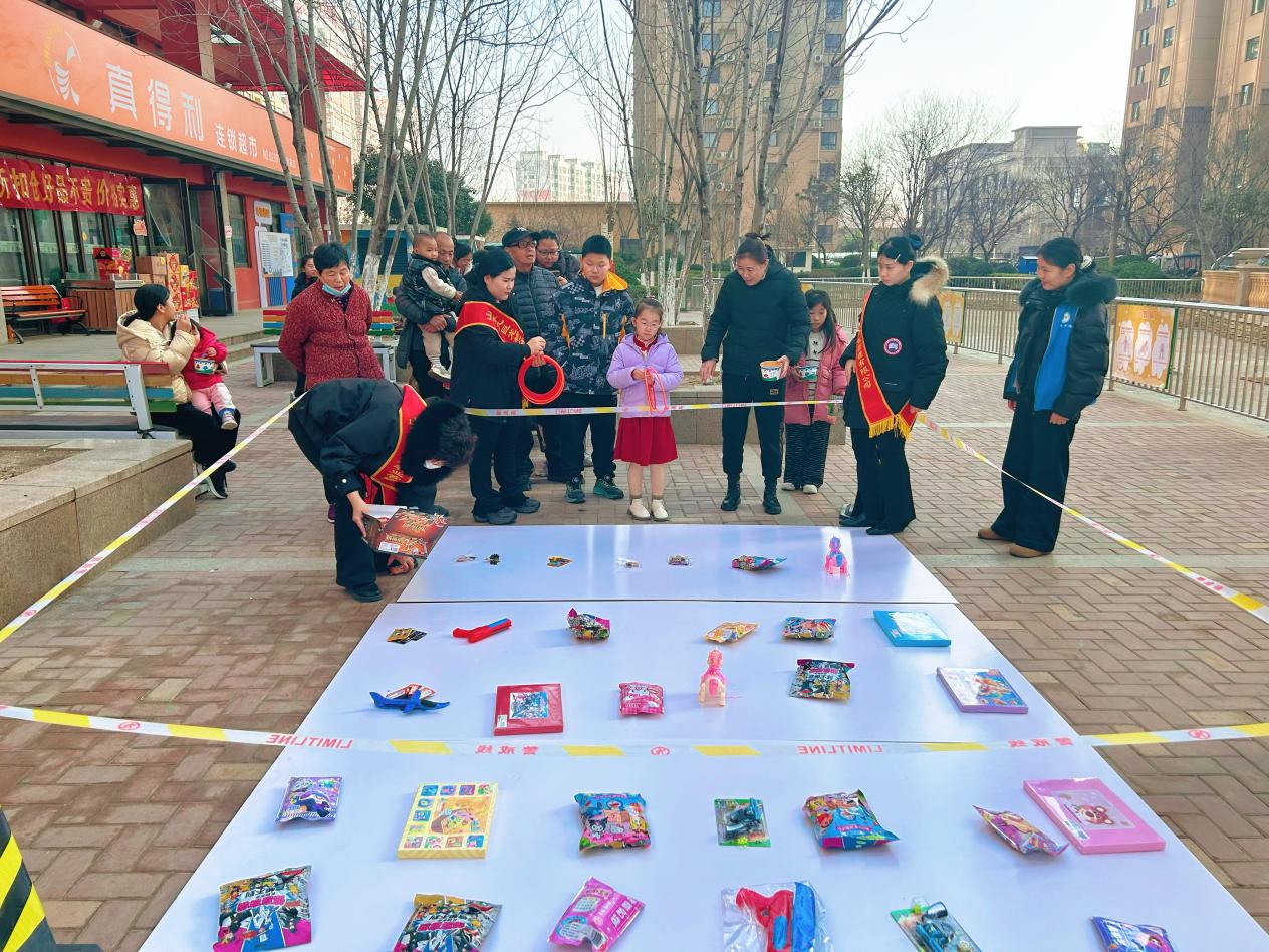 活动现场布置得格外喜庆,套圈区整齐摆放着玩偶、文具、盲盒等礼品,工作人员提前调试道具、维持秩序,确保活动安全有序。随着一声 “开始”,孩子们手持红色套圈,瞄准目标跃跃欲试,有的屏住呼吸认真投掷,有的与家长小声商量技巧,套中礼品时的欢呼声此起彼伏;家长们也纷纷加入,手把手指导孩子调整姿势,现场满是欢声笑语,邻里间的距离在互动中悄然拉近。