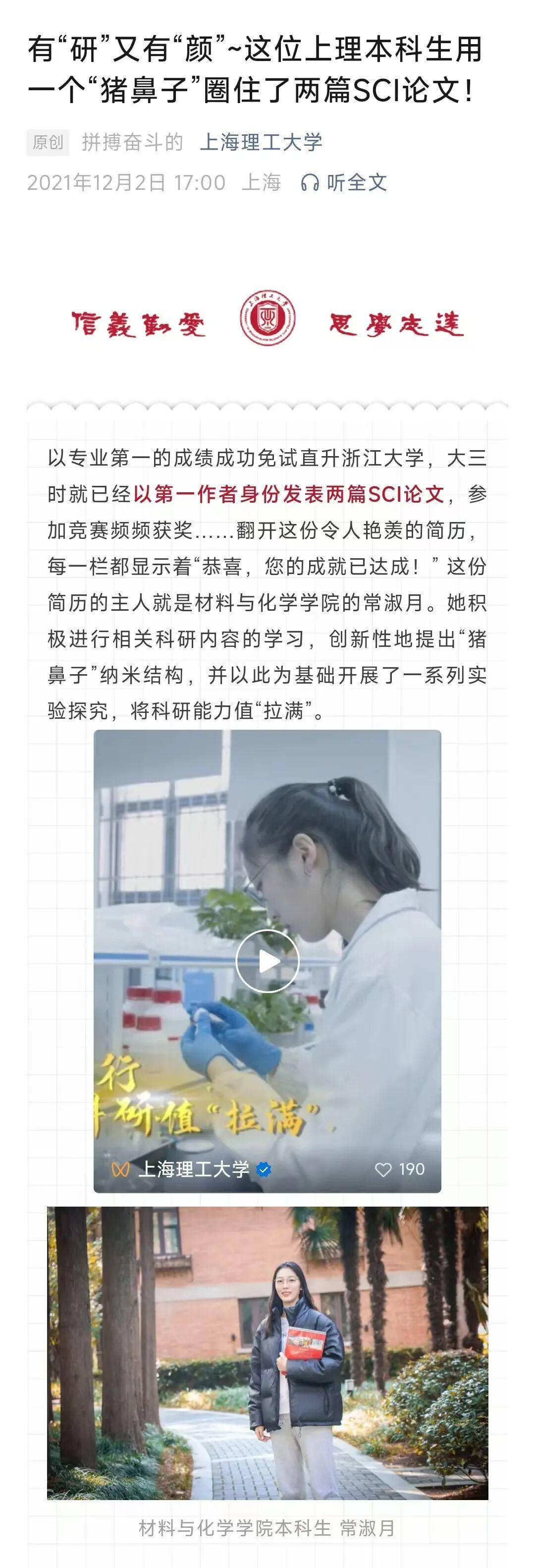 标题决定了内容在信息洪流中能否获得宝贵的“第一次点击”。如果标题做到兼具趣味性、悬念感、共情点,就能有效激发用户的阅读兴趣。比如,上海理工大学官微以“文字+图片+短视频”的组合方式推出的《有“研”又有“颜” 这位上理本科生用一个“猪鼻子”圈住了两篇SCI论文!》,标题生动鲜活,吸引诸多重量级媒体关注,最终收获新浪热搜话题2.6亿的阅读量。