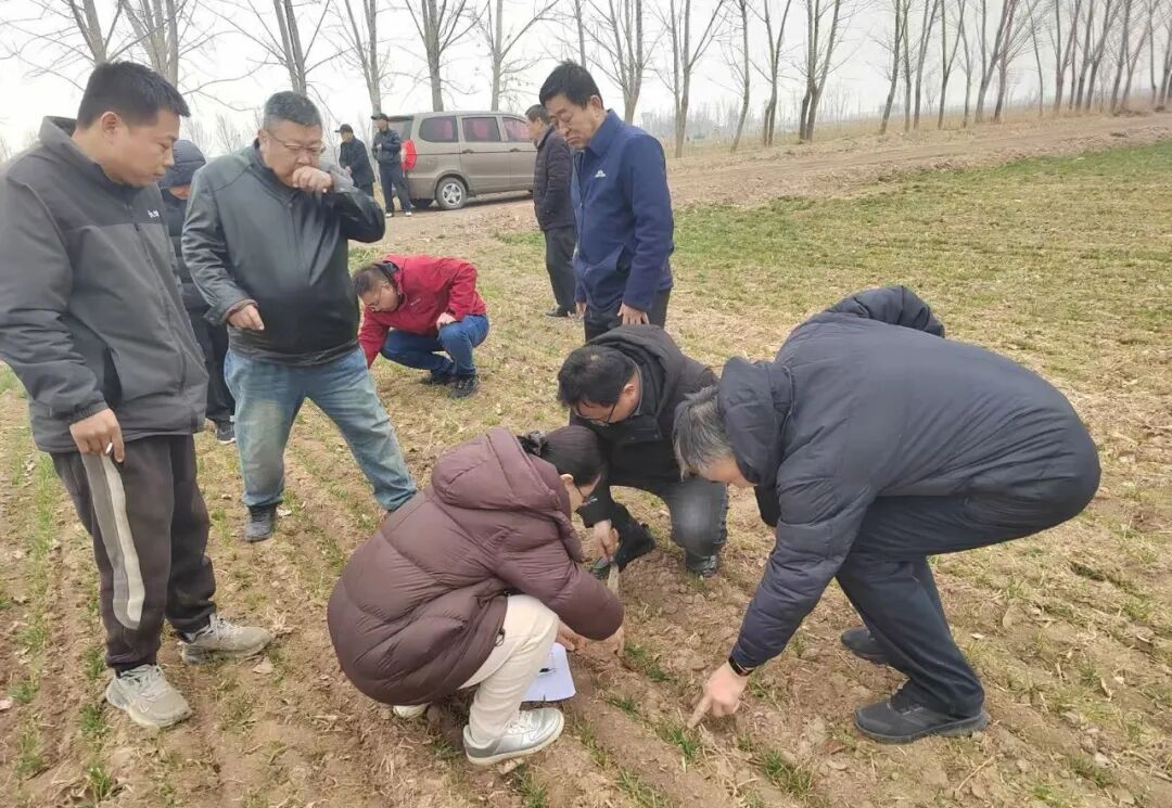 专家组一行深入田间地头,实地察看小麦苗情、土地墒情,详细询问种植户小麦播种时间、冬前管理、水肥施用等情况,现场“把脉问诊”、精准施策,为种植户开出“技术处方”,切实提升种植户科学管田能力,真正打通农技服务“最后一公里”。