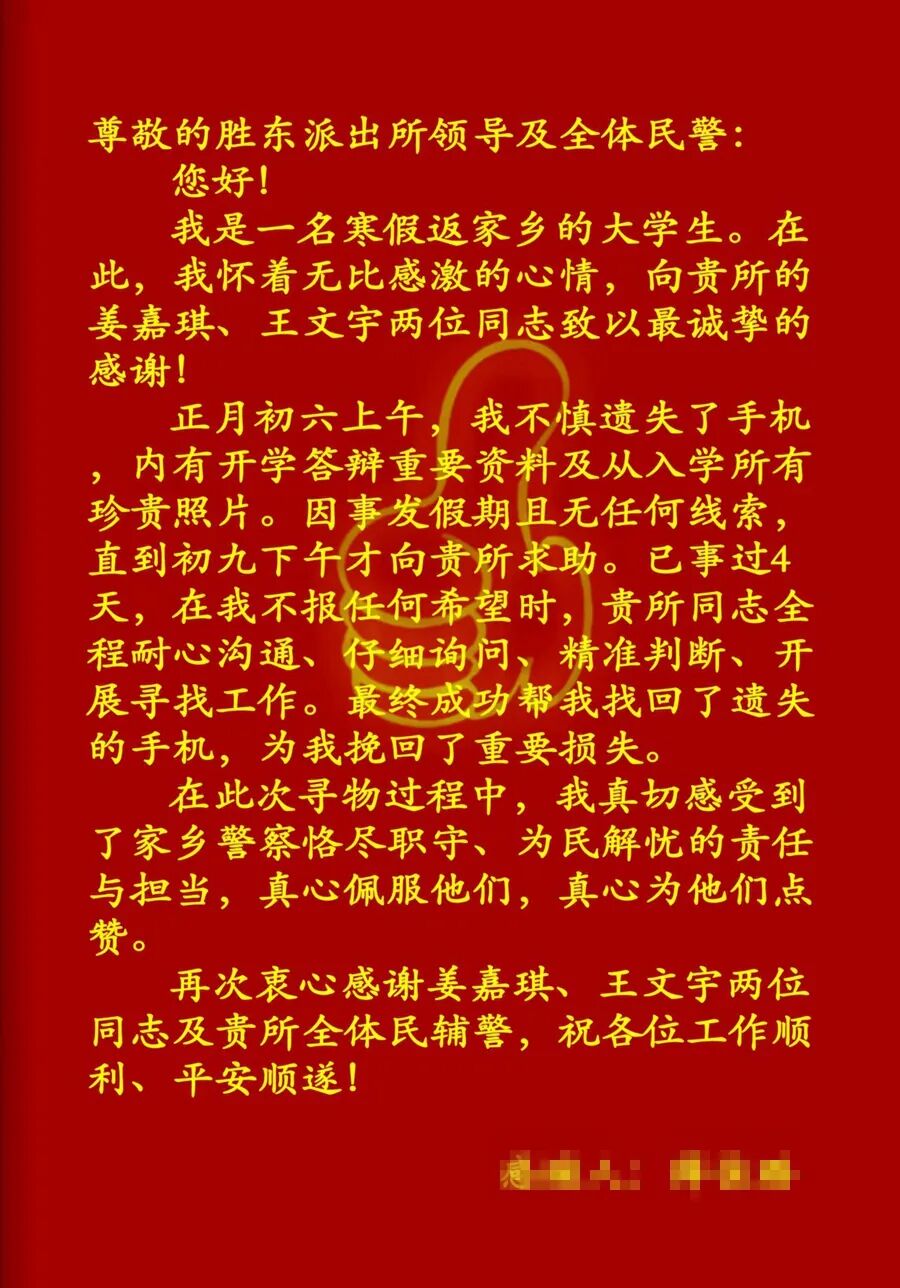 字里行间满是真挚谢意