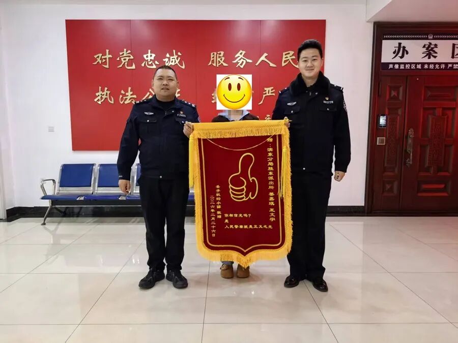 送到民警手中并与民警合影