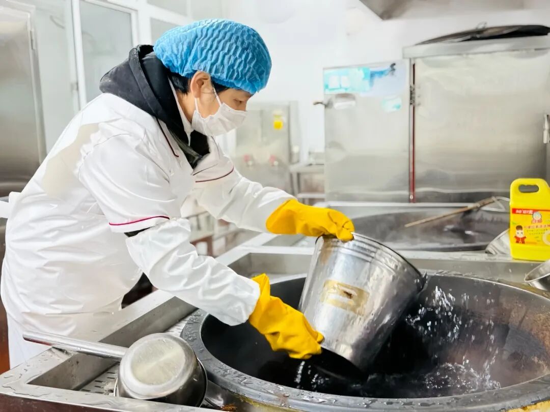 泉海小学组织教师及膳食家委会成员,对配餐公司开展食品安全专项检查,严把食材、加工、配送各环节关口,切实守护学生开学饮食安全与健康。